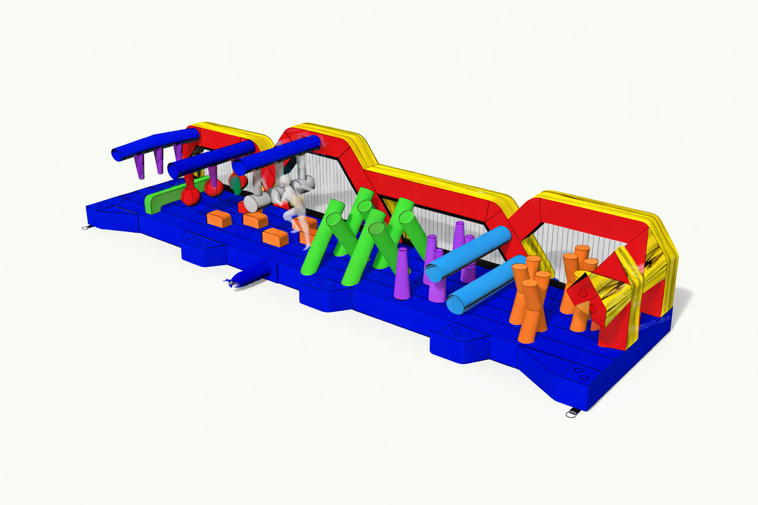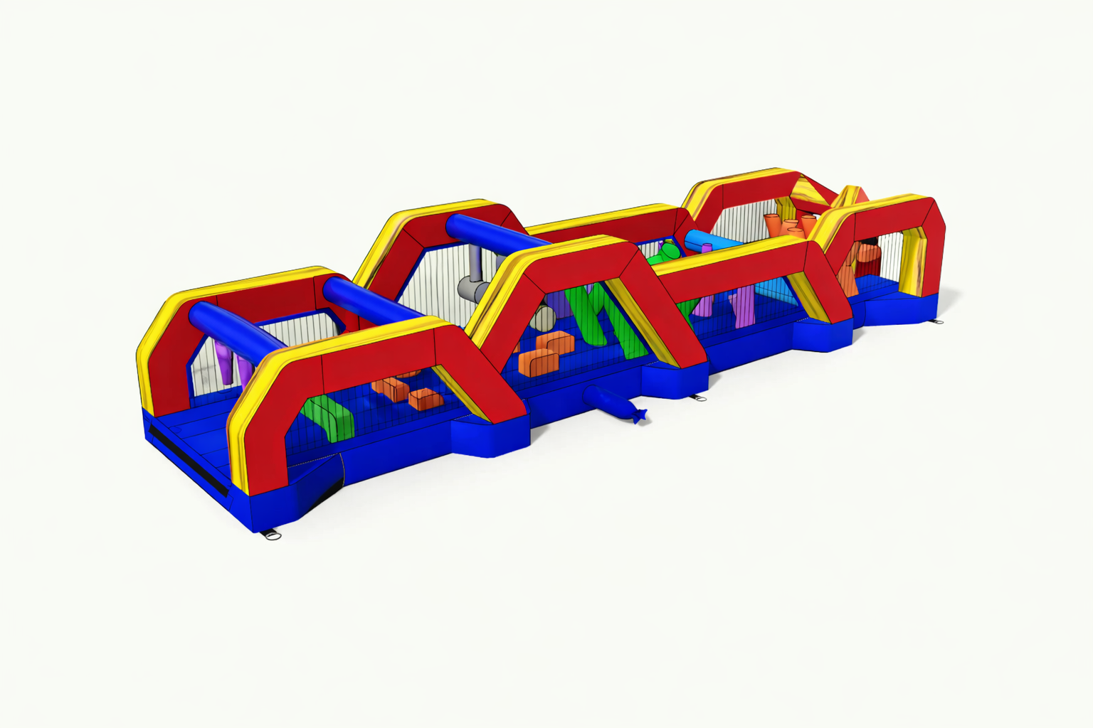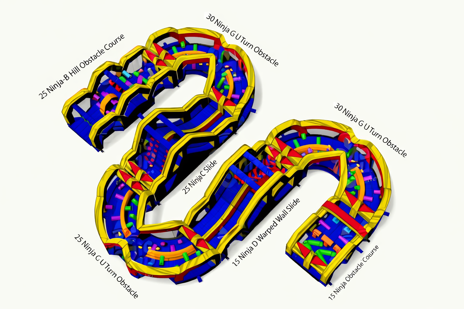 Race, climb, crawl, and slide through the Ninja Run Obstacle Challenge. This inflatable course features a series of fast-paced obstacles designed for head-to-head competition and continuous action. Built as a complete standalone attraction, it can also be expanded with additional ninja course sections to create a longer, more challenging experience.